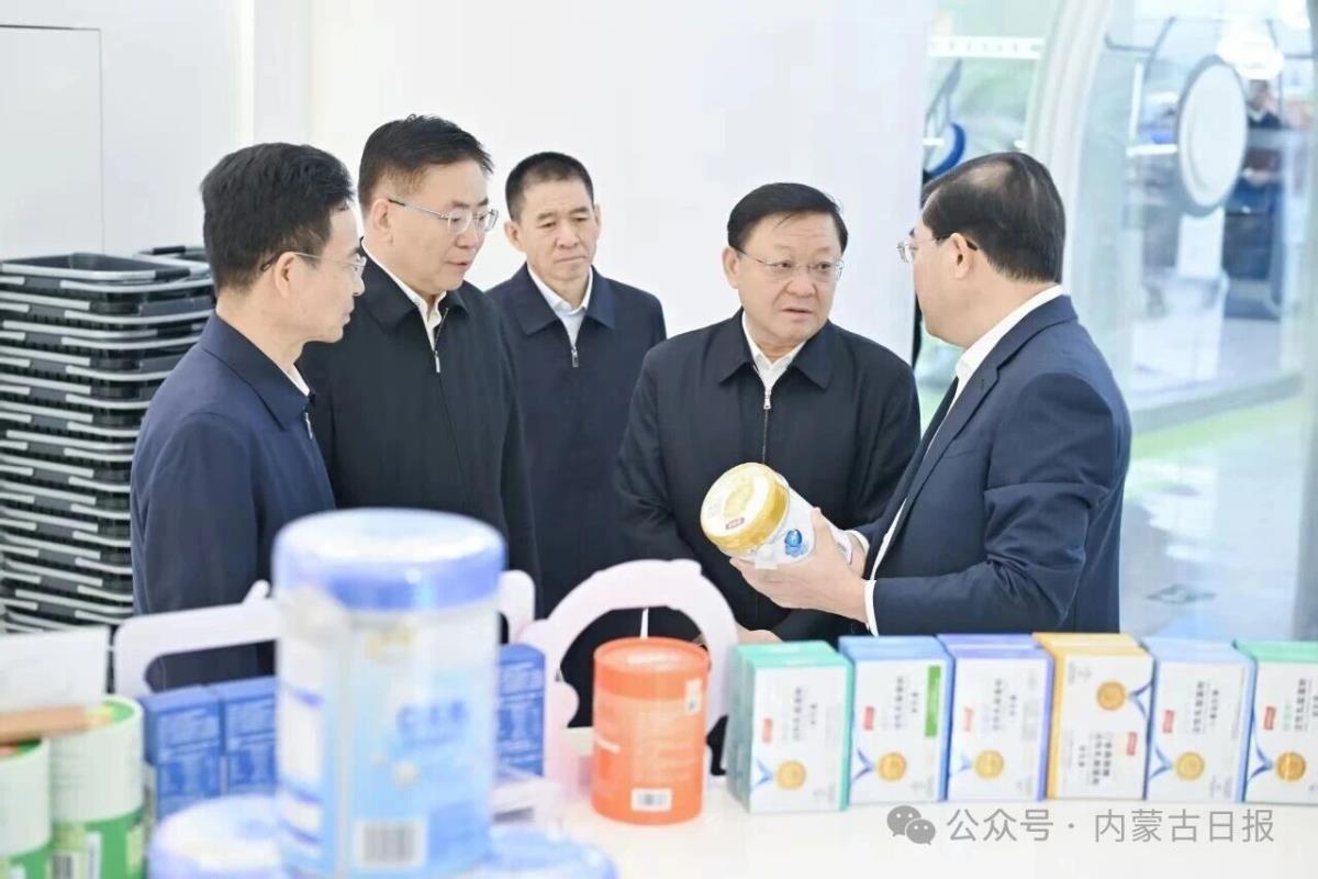 王伟中首先来到伊利现代智慧健康谷,实地察看智能制造生产线,详细询问奶业种源、产品研发、市场销售等情况,希望伊利集团对标世界顶端乳企,进一步强化创新,做强产品、做优品牌、做大规模,提高市场份额,建设更高水平的现代化标杆企业。他说,内蒙古是奶业大区,要充分发挥国家乳业技术创新中心作用,履行好高水平科技自立自强的使命,着力破解奶牛和牧草种源“卡脖子”问题。要支持大中小乳企协同发展,紧扣市场需求调整产品种类,抓好乳品质量安全管理,完善产业链各环节利益联结机制,促进奶业实现更高质量发展。