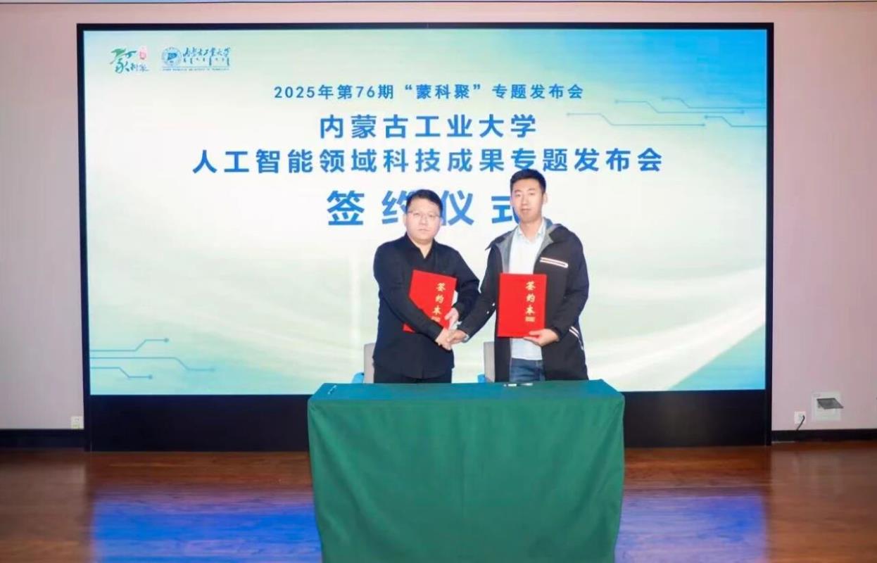 11月5日,由自治区科学技术厅、自治区教育厅指导,内蒙古科学技术研究院、内蒙古工业大学联合主办的2025年第76期“蒙科聚”专题发布会——内蒙古工业大学人工智能领域科技成果专题发布会在呼和浩特举行。