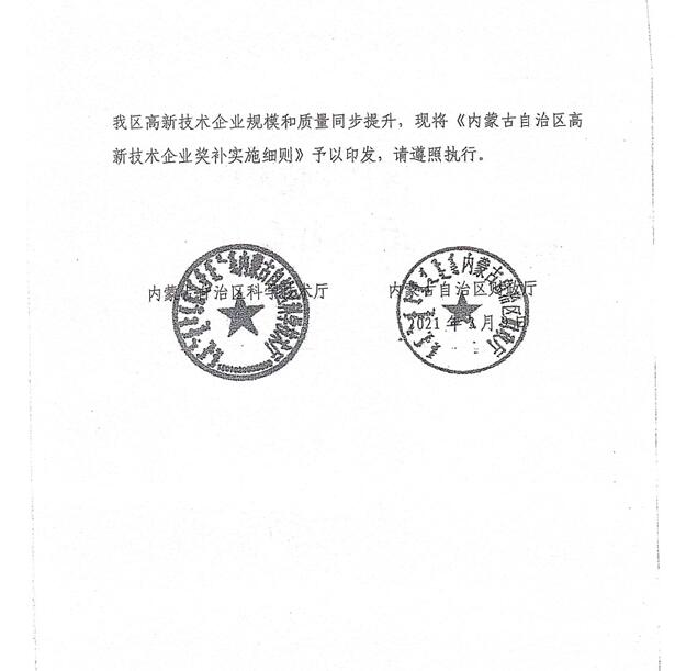 关于转发《关于印发<内蒙古自治区高新技术企业奖补实施细则>的通知》的通知